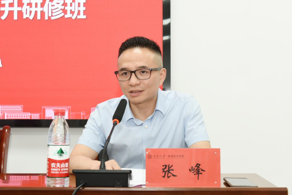 张峰致欢迎辞。他首先对各位专家和学员的到来表示热烈欢迎,并详细介绍了中南大学的发展历程、办学特色及医学领域的最新发展。他进一步阐述了此次培训的课程设置、授课专家团队及学习管理等方面的细节。